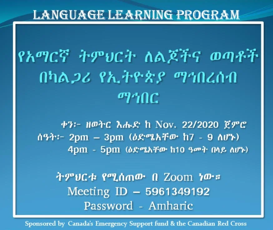 የአማርኛ ትምህርት ለልጆችና ወጣቶች በካልጋሪ የኢትዮጵያ ማኅበረሰብ ማኅበር